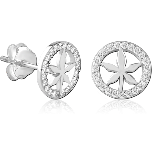 STERLING 925 SILVER JEWELED EAR STUDS PAIR - LEAF