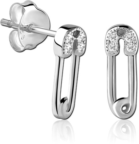 STERLING 925 SILVER JEWELED EAR STUDS PAIR - CLIP