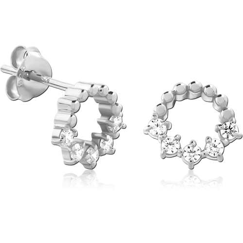 STERLING 925 SILVER JEWELED EAR STUDS PAIR