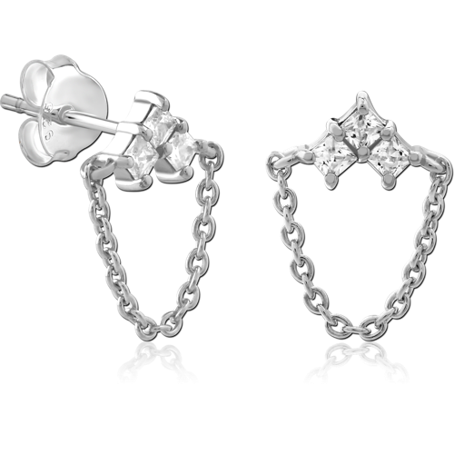 STERLING 925 SILVER JEWELED EAR STUDS PAIR