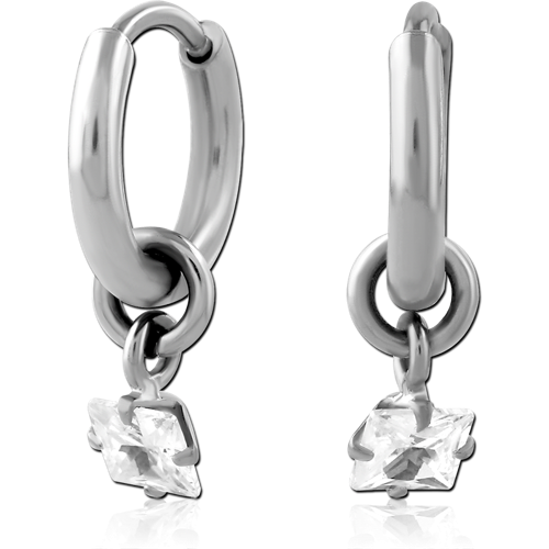 TITANIUM ALLOY HOOP EARRING WITH SLIDING JEWELED CHARM