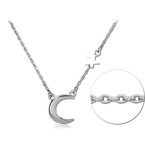 RHODIUM PLATED BASE METAL NECKLACE WITH PENDANT - MOON