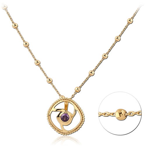 STERLING 925 SILVER GOLD PLATED 18K JEWELED NECKLACE WITH PENDANT