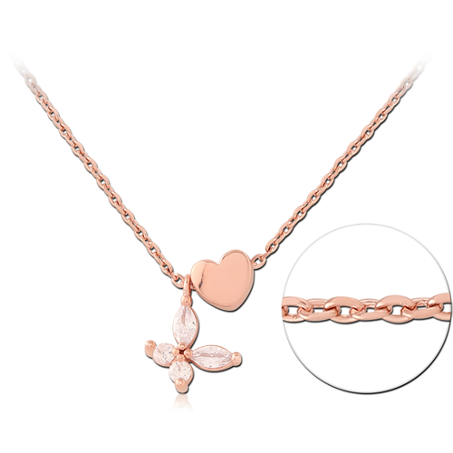 STERLING 925 SILVER ROSE GOLD PLATED JEWELED NECKLACE WITH PENDANT