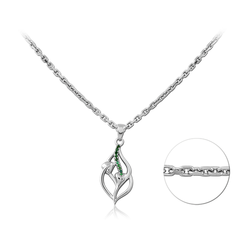 STERLING SILVER 925 RHODIUM COATED JEWELED NECKLACE WITH PENDANT