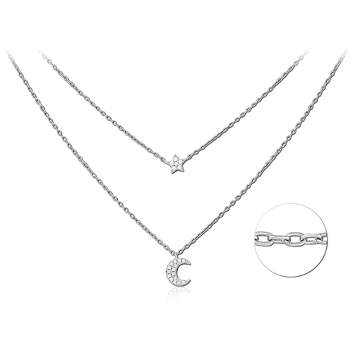 STERLING SILVER 925 RHODIUM COATED JEWELED NECKLACE WITH PENDANT