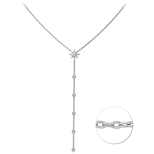 STERLING SILVER 925 RHODIUM COATED JEWELED NECKLACE WITH PENDANT