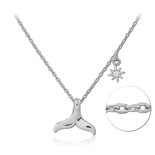 STERLING SILVER 925 RHODIUM COATED JEWELED NECKLACE WITH PENDANT