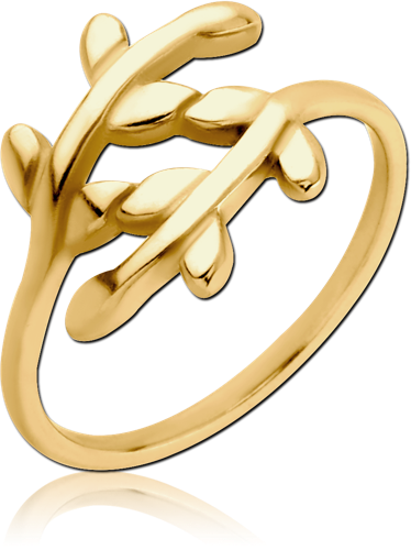 GOLD PVD COATED SURGICAL STEEL GRADE 316L RING - LEAF