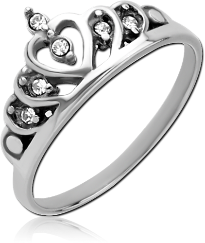 SURGICAL STEEL GRADE 316L JEWELED RING - CROWN