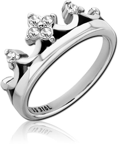 SURGICAL STEEL GRADE 316L JEWELED RING - CROWN