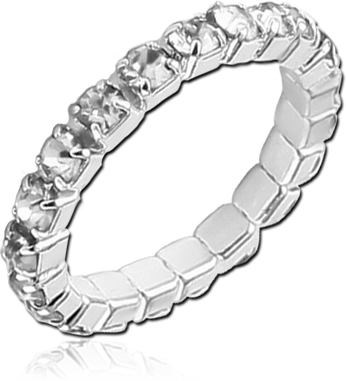 RHODIUM PLATED BASE METAL STRETCH STACK RING SIZE 17-21 MM