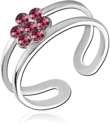 STERLING 925 SILVER JEWELED TOE RING - FLOWER
